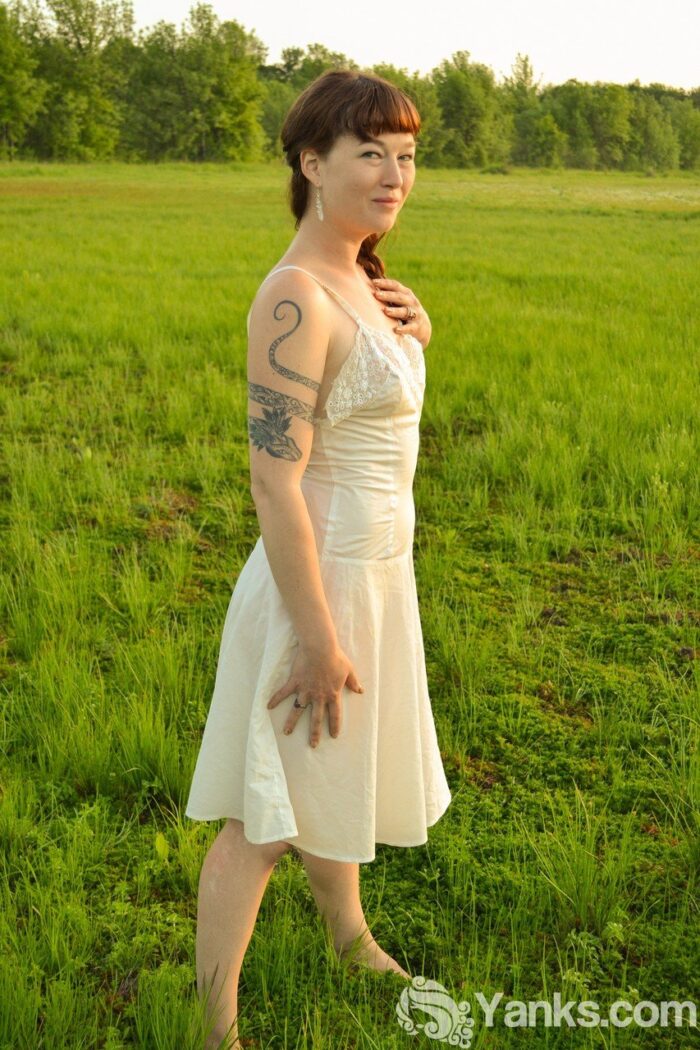 Cute girl Turquoise undresses outdoors to sun her small nice boobs