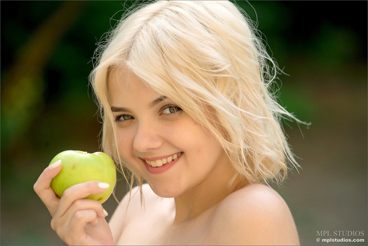 Young beautiful blonde Chanel Fenn posing naked in shallow water